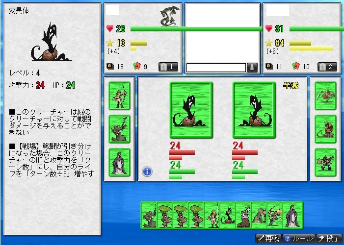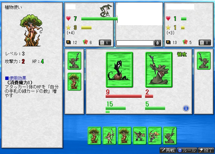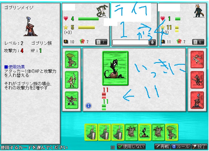 要は、基本的には戦うカードを出す→使用効果で勝負って感じになるんだけど