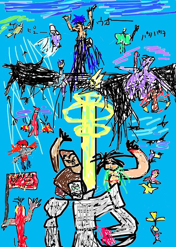 A みんなで空を飛ぼうとしているの図です!