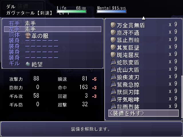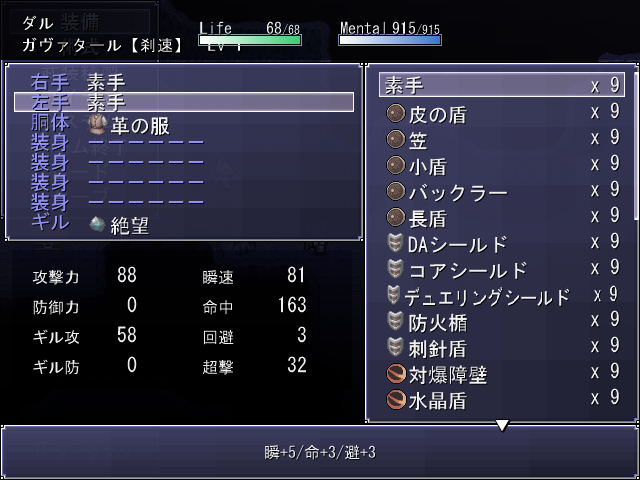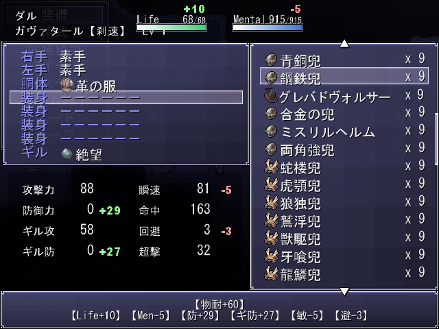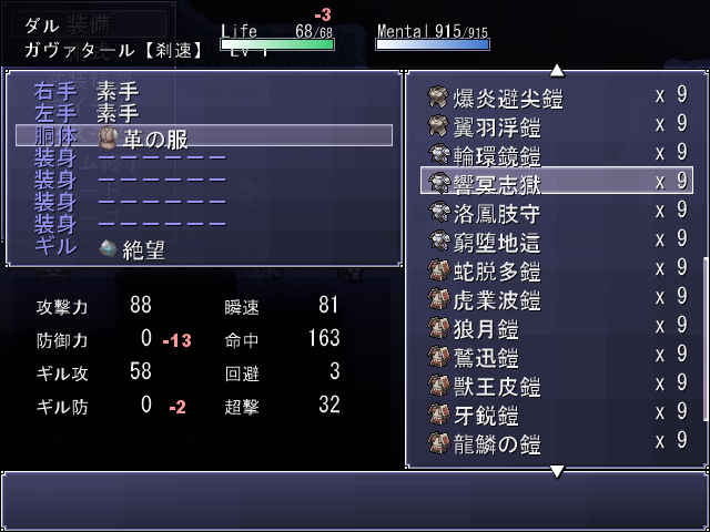装備時の数値や説明文は全然書いてなくて、防具もまだ全部名称決まってないれす。