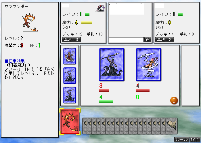 サラマンダーを引いて黒の書×19で19ダメージ