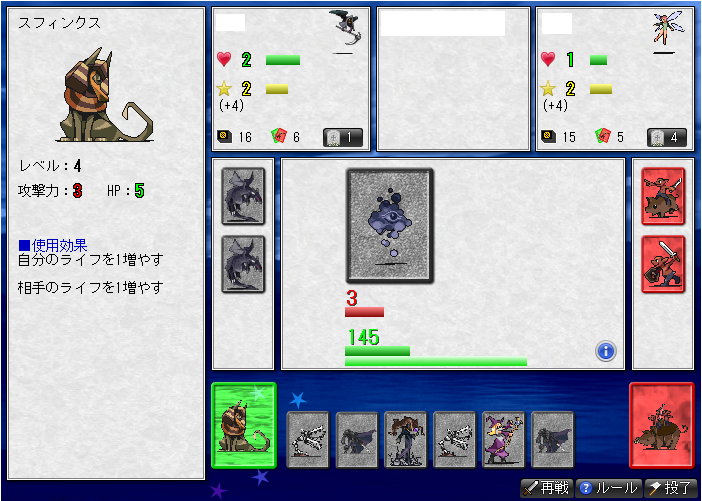 序盤こっちが女海賊をだし、海賊親分も使って手札が多くなる