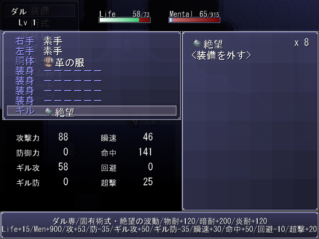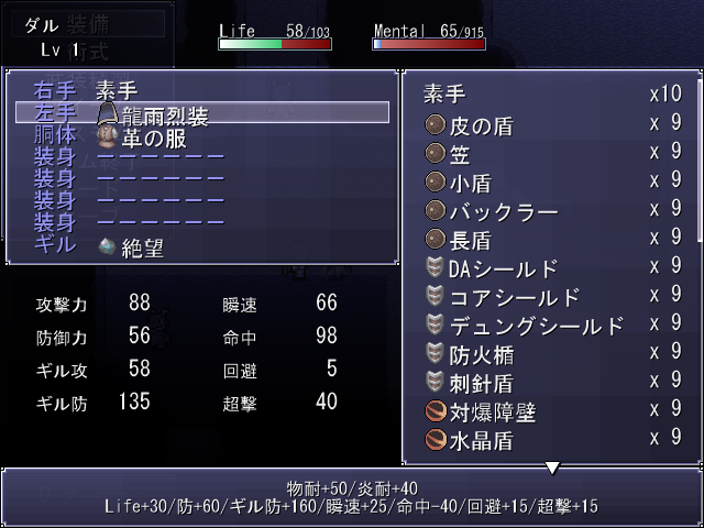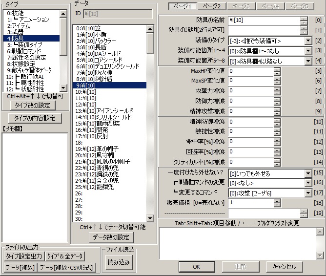 A 作ったのはいいんですが、やったのは、防具の名称決めと、アイコン割り当てです。