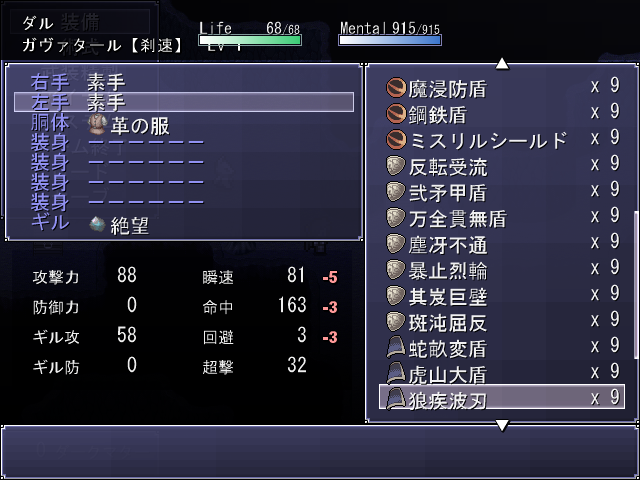 装備時の数値や説明文は全然書いてなくて、防具もまだ全部名称決まってないれす。