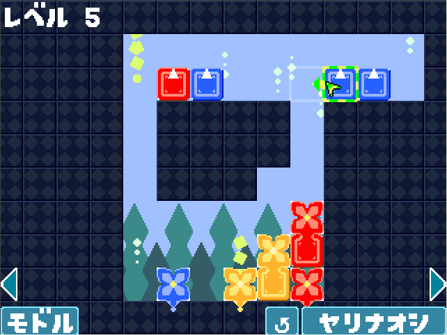 落ちていいのは、一番右上の赤と、一番左上の青が咲ける場合だけ