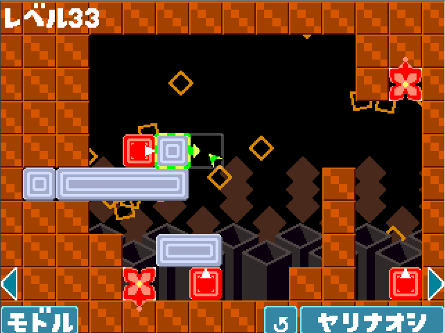 上の3マス灰に乗っている赤と1マス灰、両方を橋渡しで一番左へ