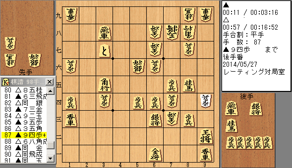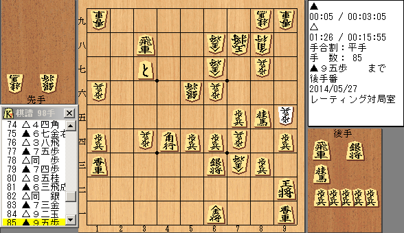今、先手が▲9五歩と付いたところ。後手がzan。