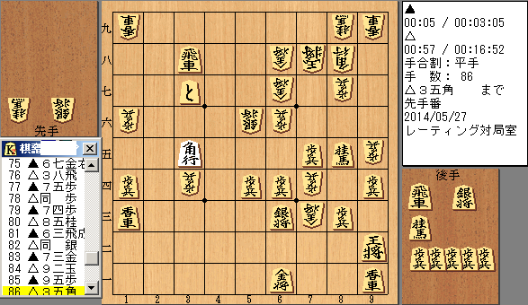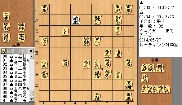 この対局は持ち時間15分、秒読み60秒です。
