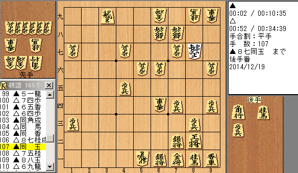 というか、後手勝勢です。