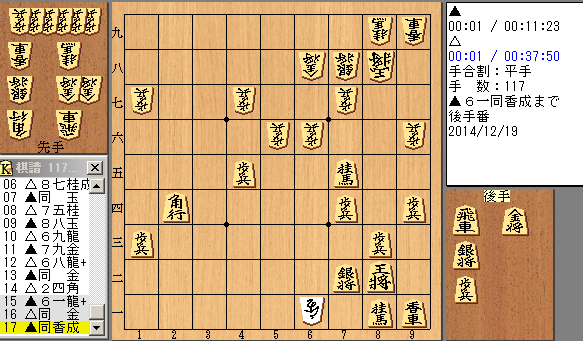 その後の指し手を見てみると、▲1七玉△2五桂▲2六玉△3七桂成▲同玉△2七香成……