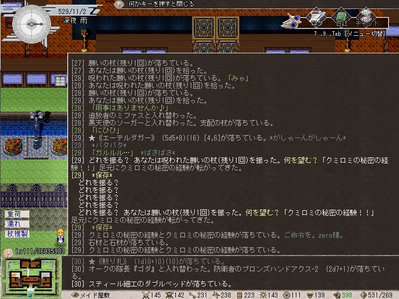 とりあえず今回zanは、111レベルで、12個のクミロミの秘密の経験を使いました!