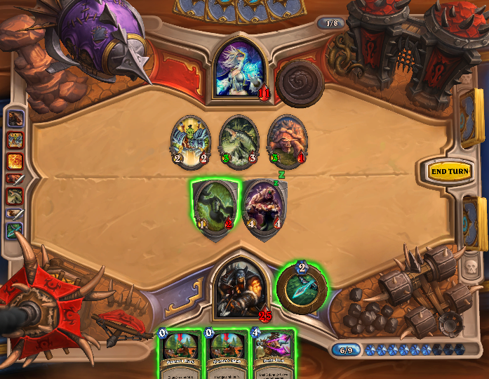 ミニオン回復する度にカード引ける1コスミニオンと、攻撃5以上破壊スペルね。